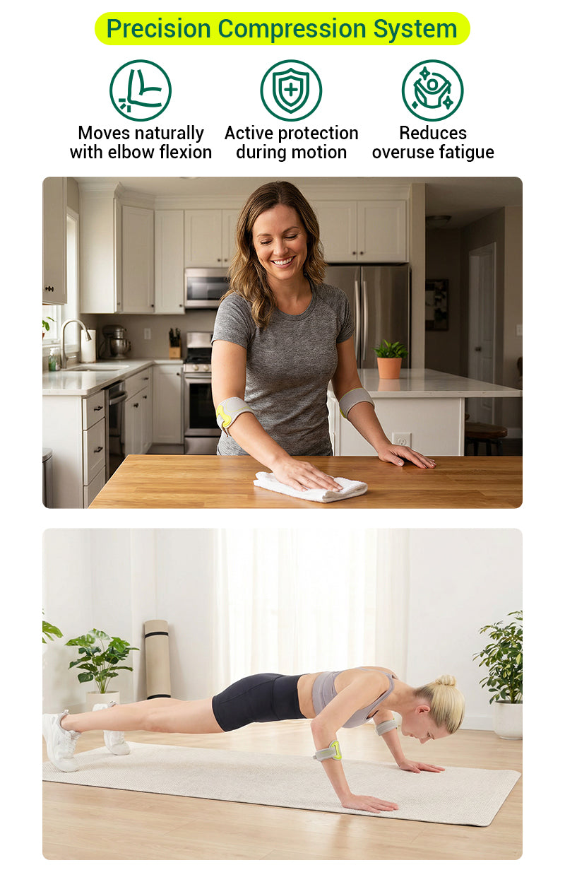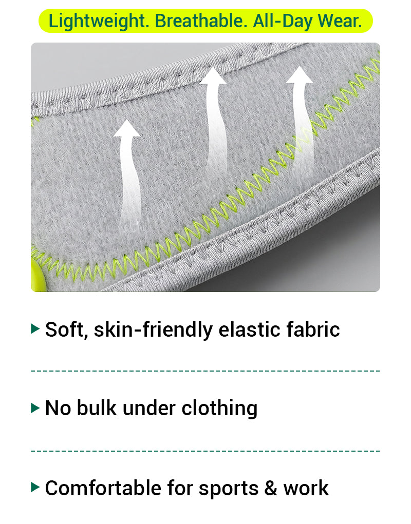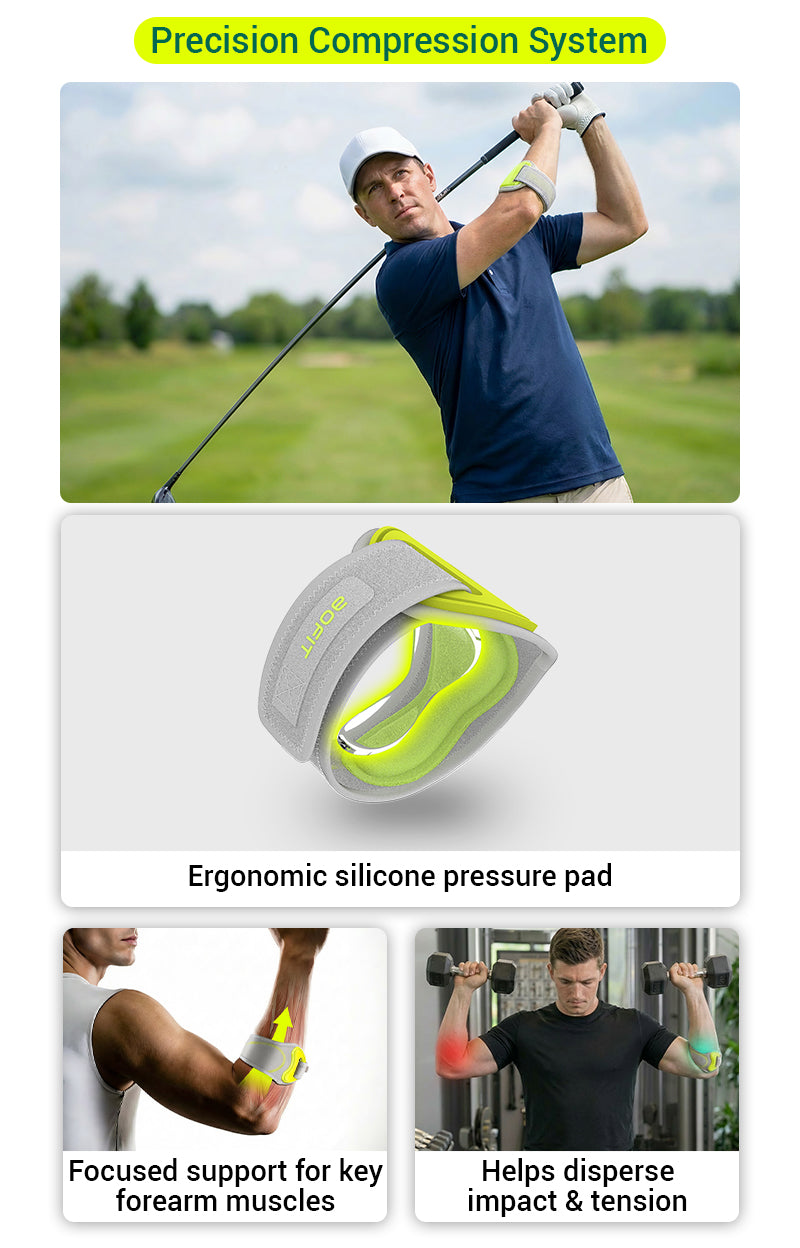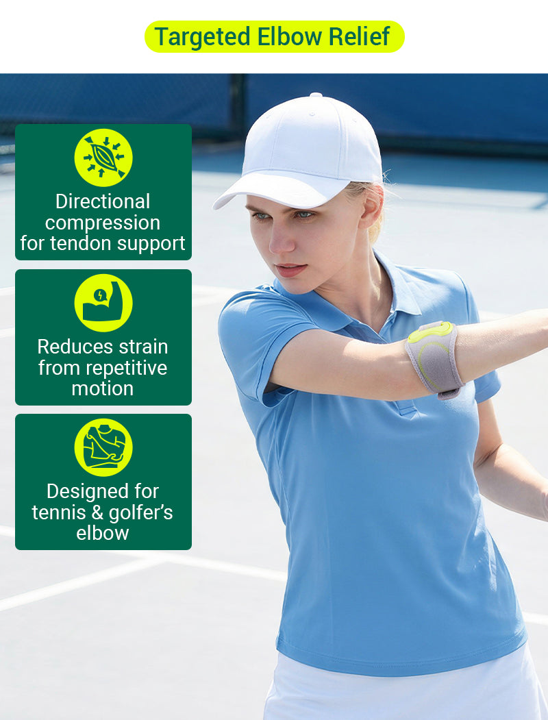 Ergonomic pad delivers focused pressure to reduce strain on key elbow tendons.