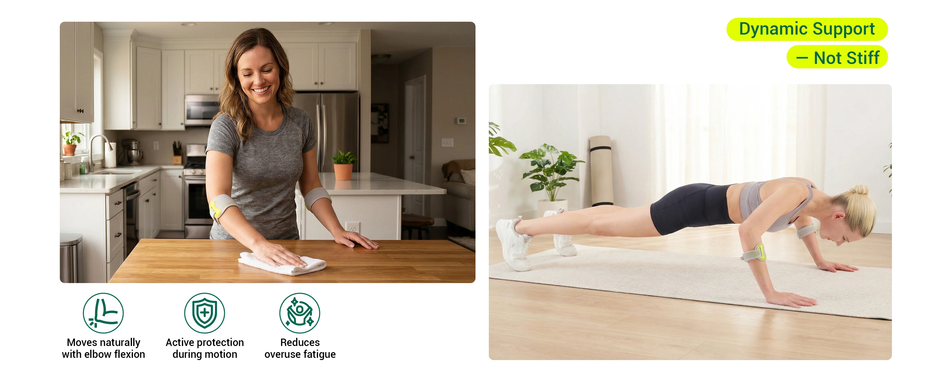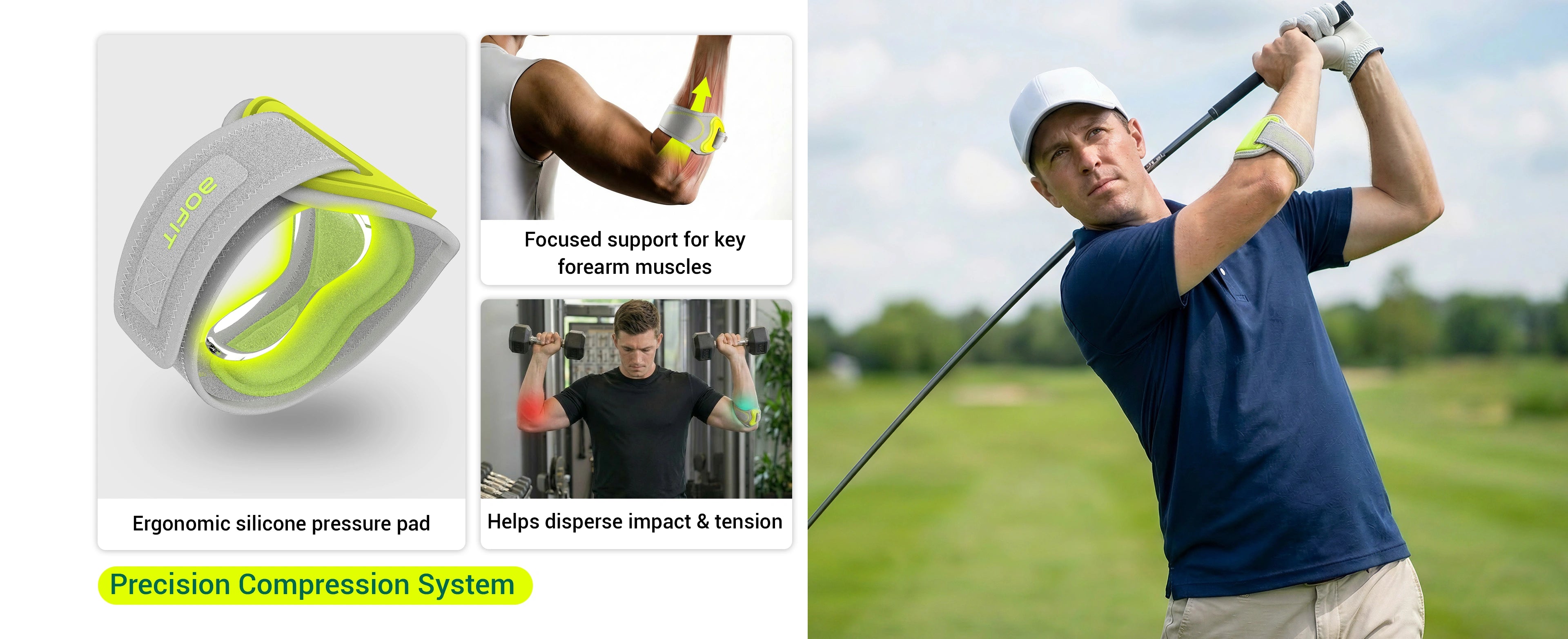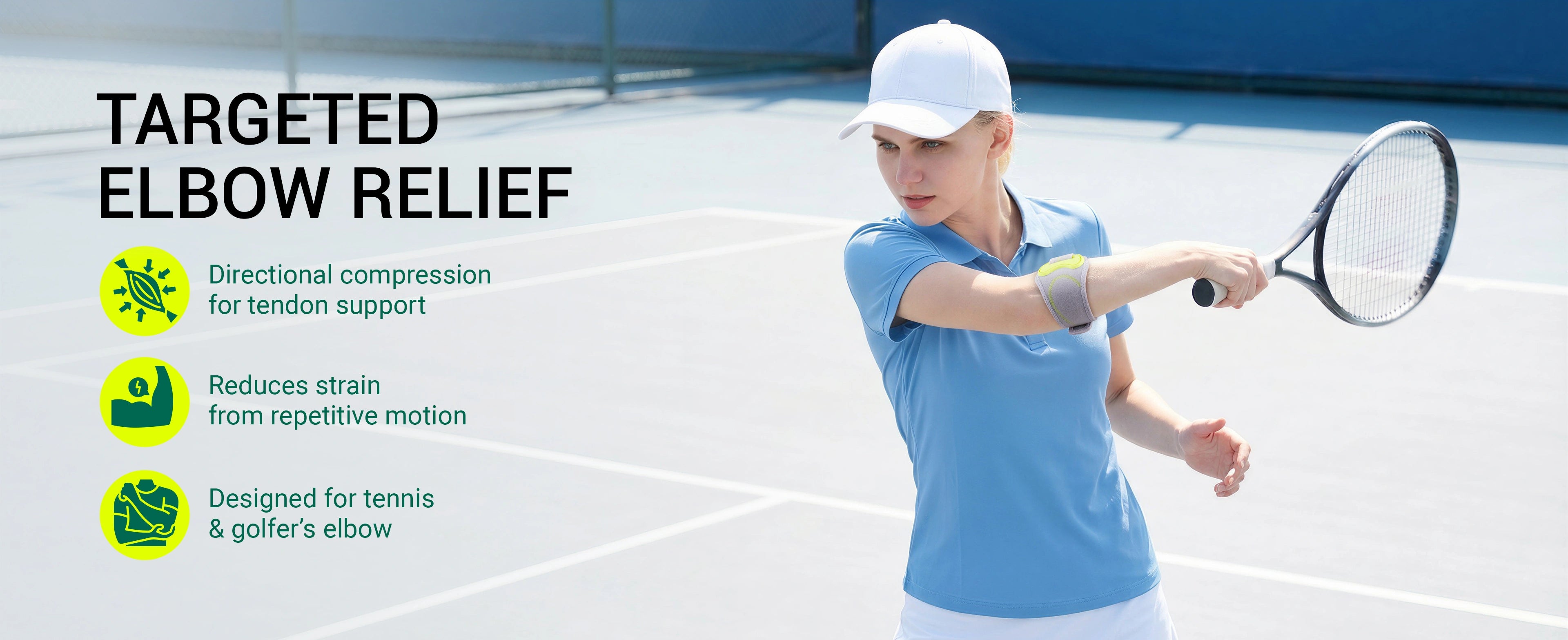 Ergonomic pad delivers focused pressure to reduce strain on key elbow tendons.